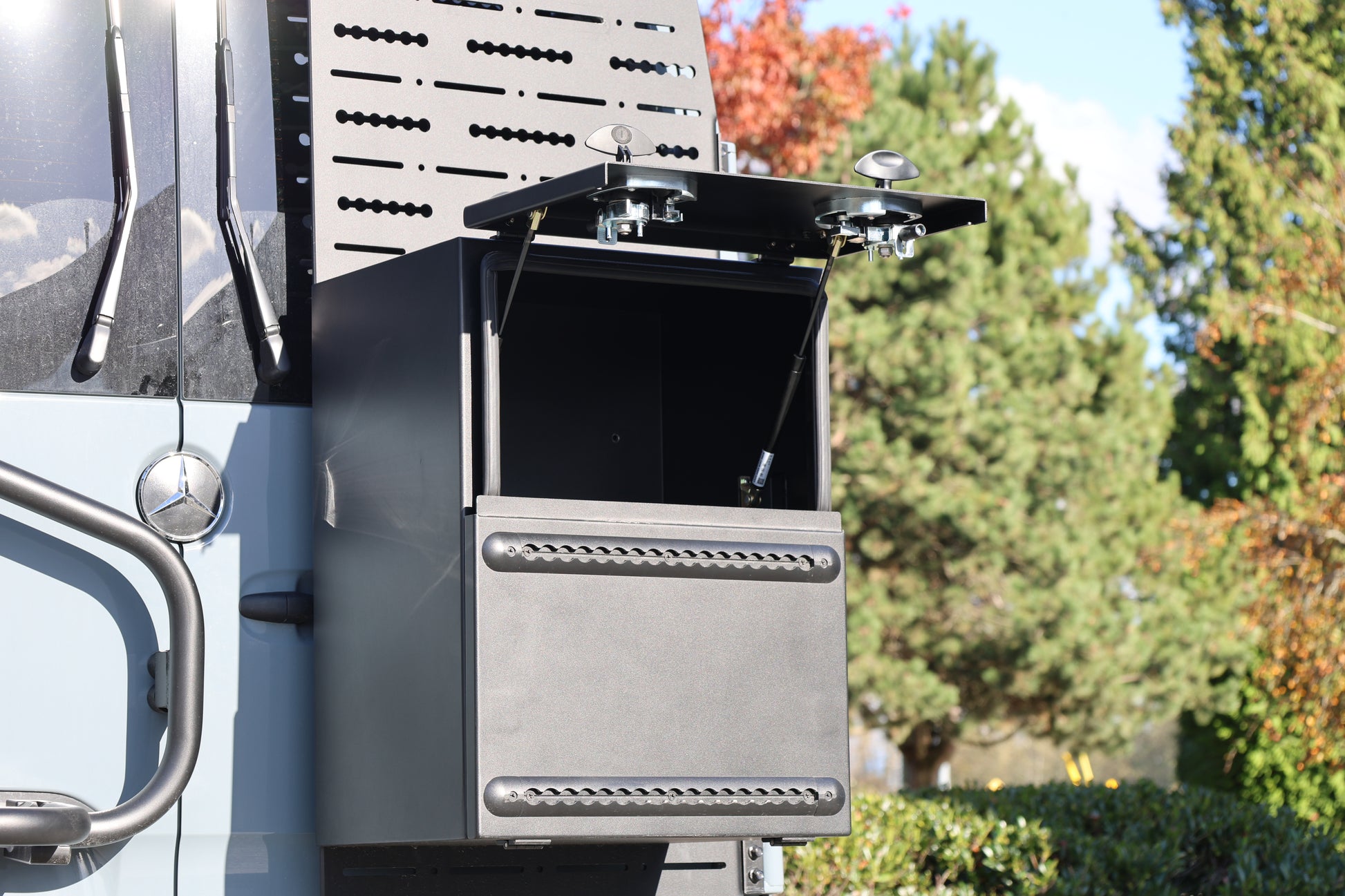 Crafted with the same premium materials as our popular Grande, Venti, and Trenta models, these split door boxes feature no visible welding points and are constructed with premium-finished lightweight aluminum. We’ve added L-Track on the exterior for extra gear mounting, making them highly versatile for any adventure or professional use. The top door section is supported two self-opening gas struts. Dual locks ensure both compartments are secure with locksets that are keyed and can also be padlocked - double security!