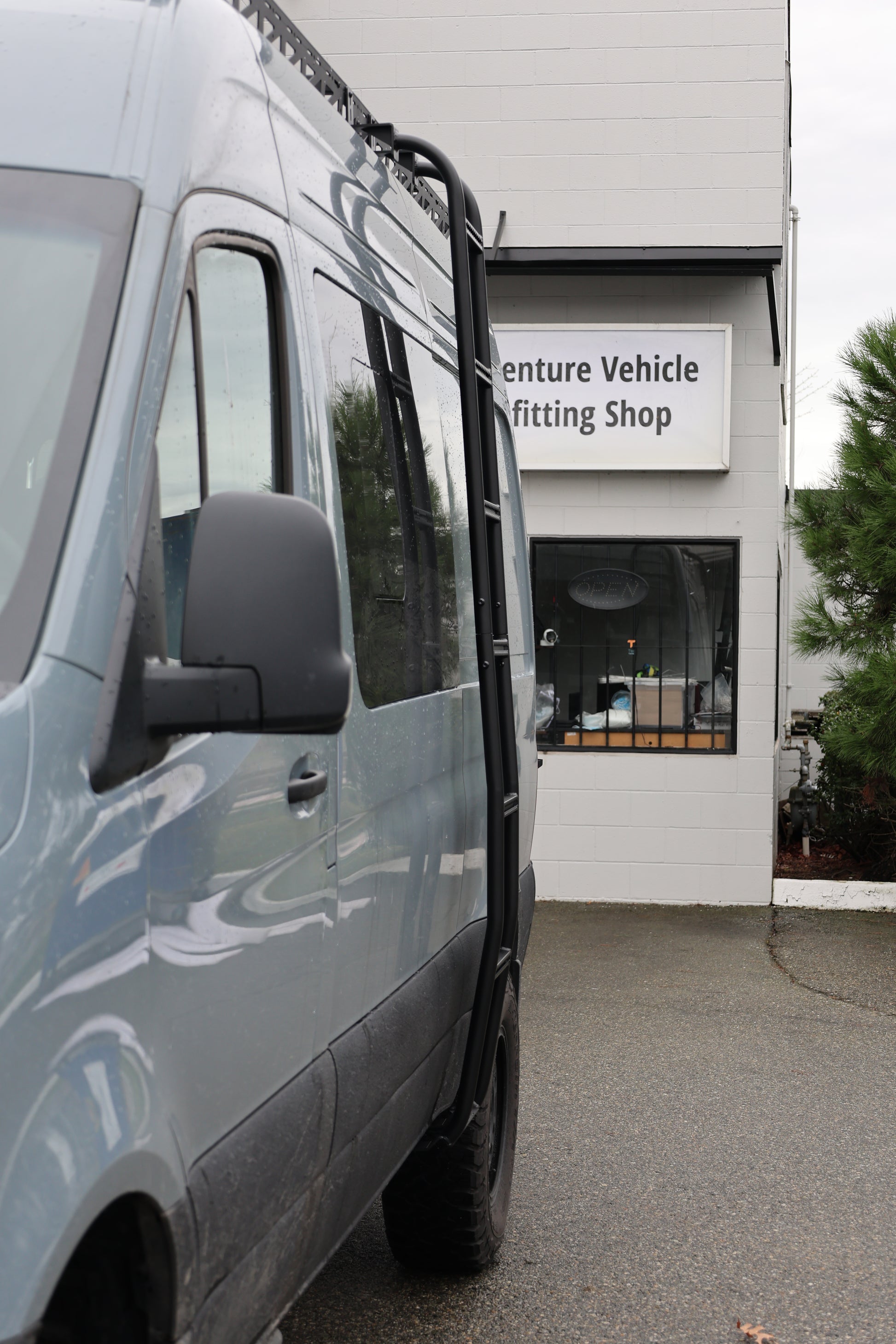 Introducing the Tec Vanlife engineered Sprinter side ladder - the perfect solution for your 2007+ 144" & 170" high roof Sprinter vans. This ladder is meticulously crafted with sturdy, high-quality aluminum to ensure that it is not only durable, but also light weight and easy to use.