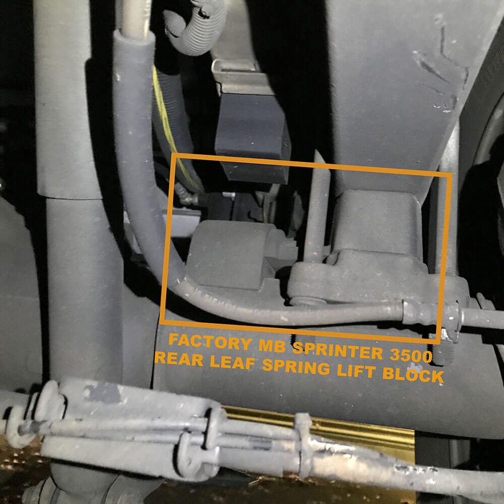 - Agile Fox 2.5 shocks will only fit 3500 Sprinters that came equipped from the factory with 2-inch lift blocks. If your Sprinter does not have lift blocks Mercedes may be able to provide them for you. If you’re unsure of where to look for the lift blocks, please refer to the last photo.