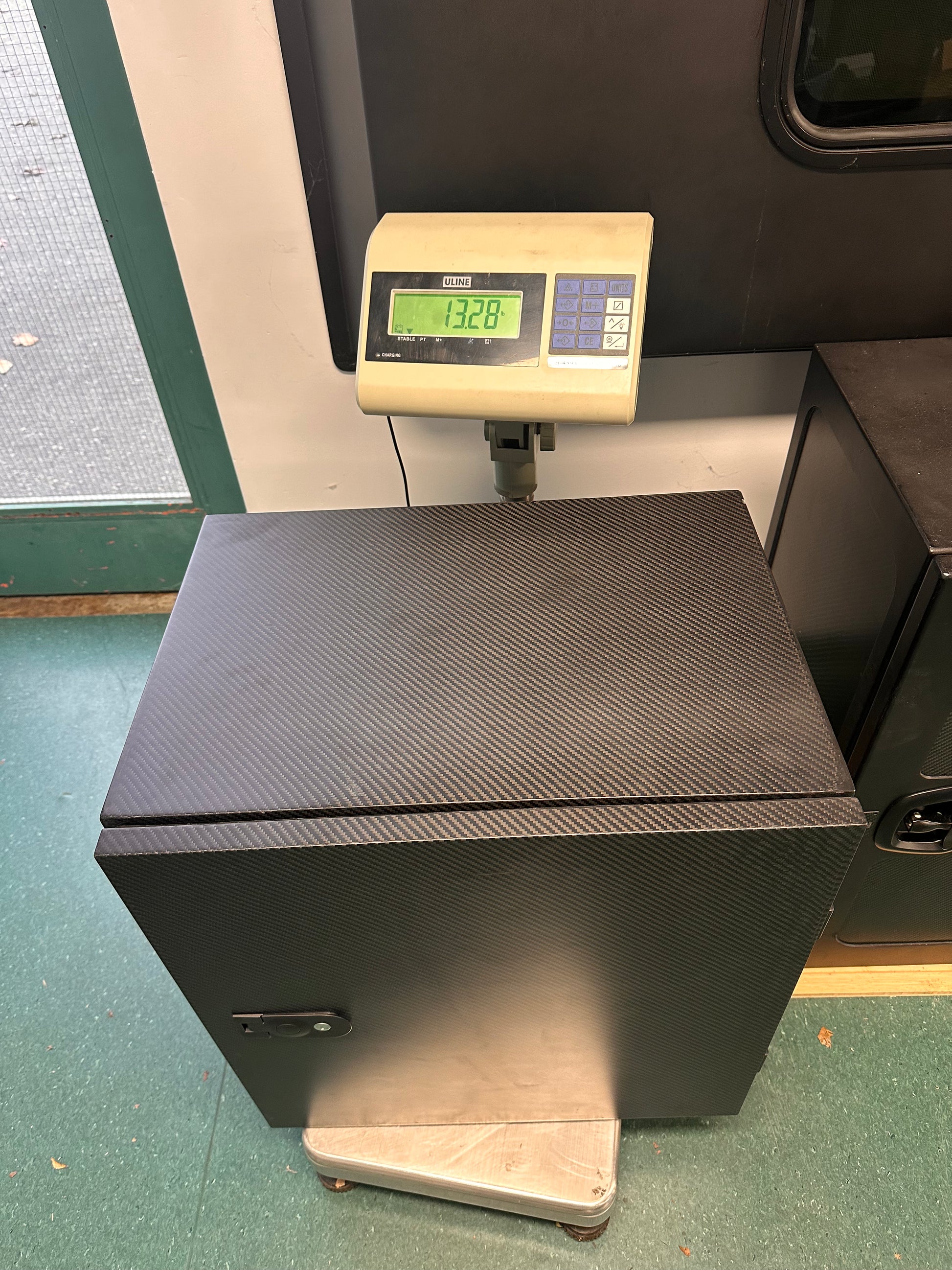 At just 6.02 kg (13.27 lbs), the Grande Carbon Box is dramatically lighter than traditional aluminum boxes (up to 39 lbs), making it easier to mount, reposition, and use on doors, racks, and swing-outs.