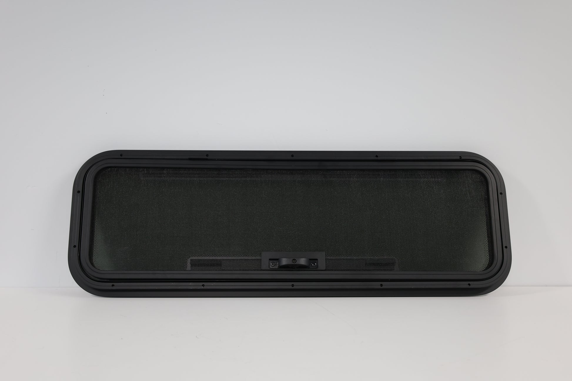 The Tec Vanlife AW1033 Awning Window is the ideal choice for camper van bunk installations, providing excellent ventilation even in rainy conditions. Its flat glass design ensures easy installation, and the tinted solar glass, removable screen, and black powder-coated frame offer both functionality and style. The silk-screened black faded edges and solar privacy glass blend seamlessly with the matte black frame, giving your van a premium, modern look.