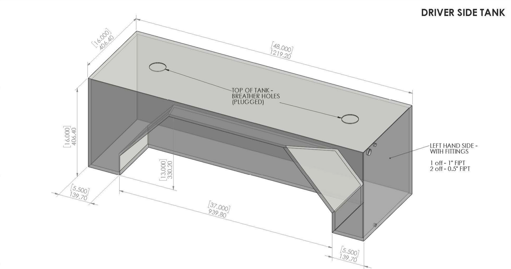 Perfect for Transit / Sprinter. Raise tank by 2.5" for ProMaster (48"x16"x16").