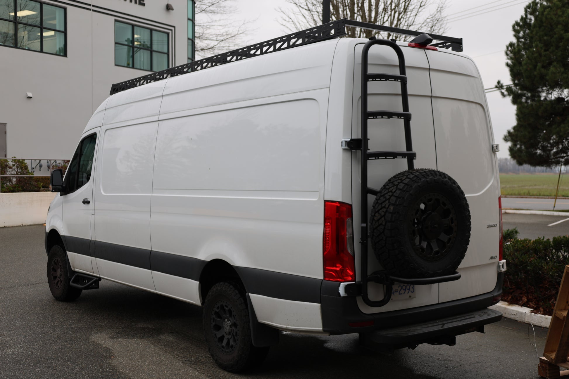 Upgrade your 2019+ Sprinter van with the Tec Vanlife Tire & Ladder Carrier—the ultimate solution for secure roof access and dependable spare tire storage. Crafted with a premium aluminum frame reinforced by stainless steel, this lightweight and corrosion-resistant carrier is designed to withstand the rigors of off-road adventures while maximizing functionality.