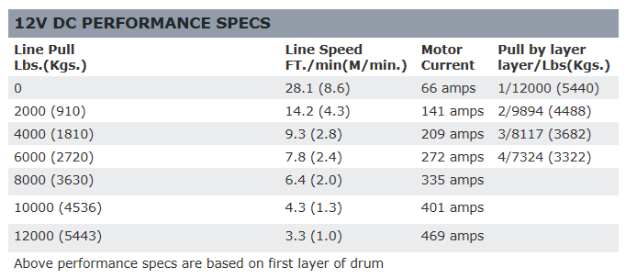 | Max Amp Draw/ Line Pull | 469 Amp Draw/ 12000 Pound |